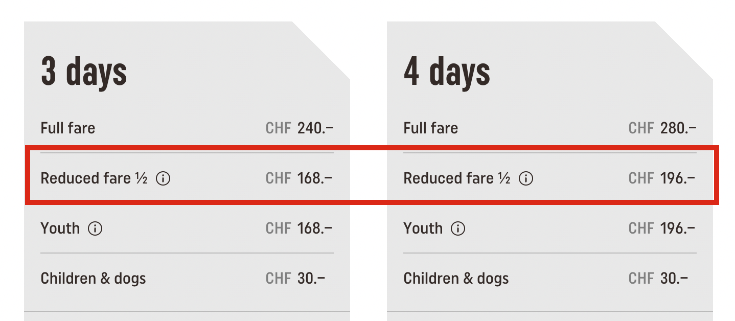 The Berner Oberland Pass can be purchased with around 30% discount if you have a Swiss Travel Pass or Half Fare Card. So, not only is the pass super affordable and handy to have, it is even cheaper if you are traveling around with another Swiss travel pass.