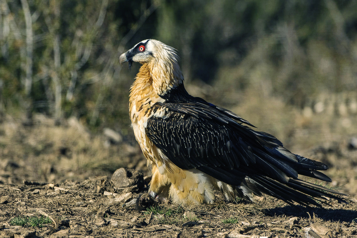 Der Bartgeier, einer der seltensten Greifvögel Mitteleuropas, ist an seiner großen Spannweite (ca. 3 m), dem weißen oder rötlich-gelben Brust- und Kopfgefieder und den grauschwarzen Flügeln und dem Schwanz zu erkennen. Als Erwachsene haben sie Borsten an der Basis des Schnabels, die einem Bart ähneln.