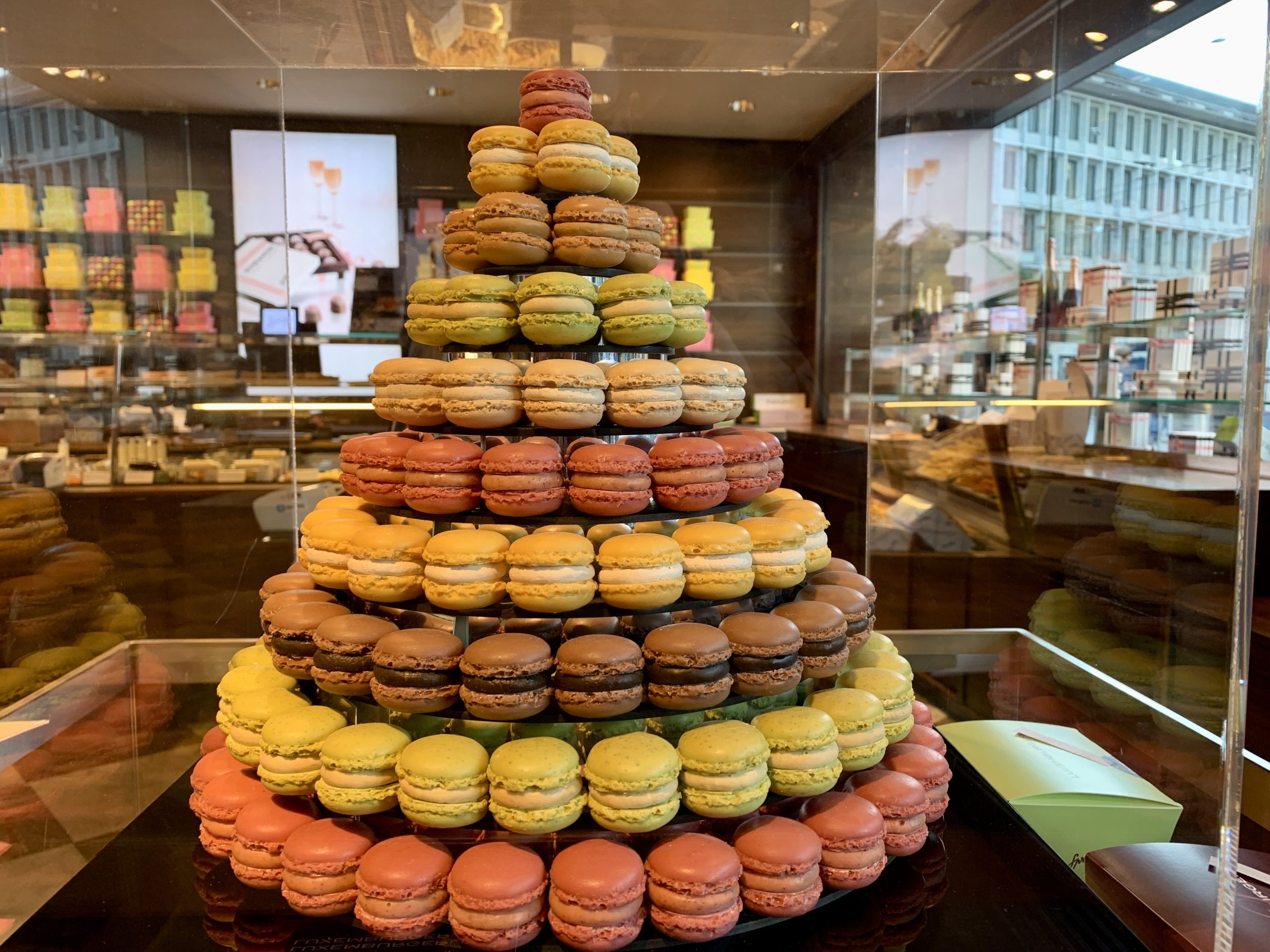 If you want a break before continuing your walking tour here, Confissierie Sprüngli is a great stop for a bite to eat, coffee, cake or just a quick drink. They have seats outside in summer, but the main restaurant is upstairs. It’s also where you can grab one of Zurich’s most famous treats – the Luxemburgerli macarons.