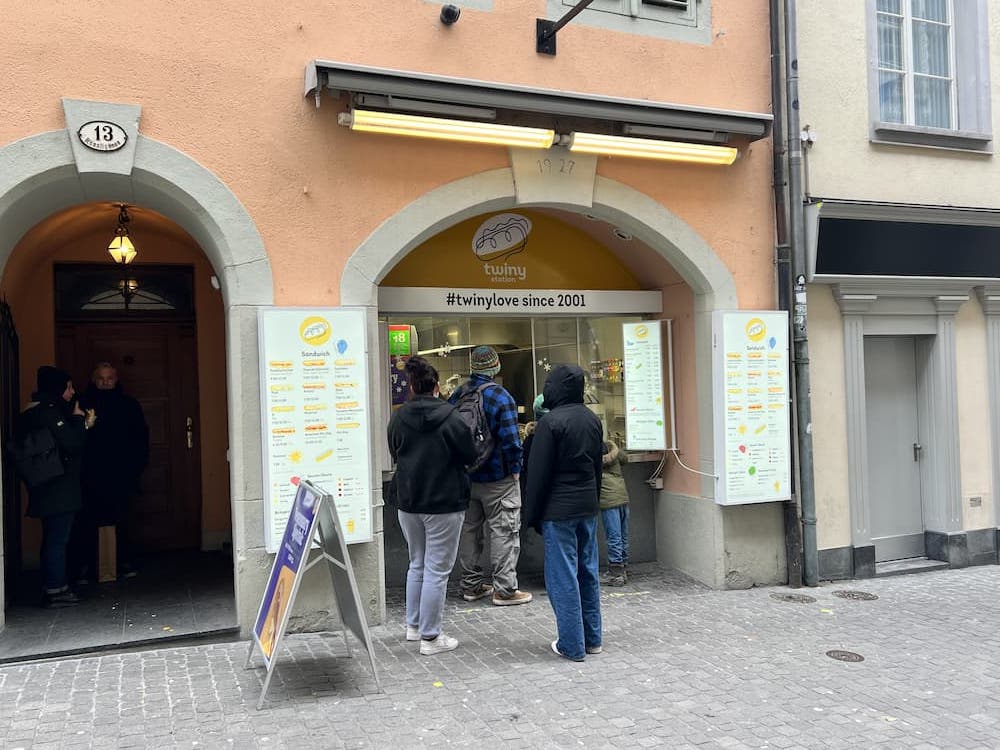 Twiny Station is a hole-in-the-wall sandwich shop in Lucerne Old Town. The location is perfect if you’re exploring the historic city center because you can always stop by the shop in under five minutes. And you can get some surprisingly delicious sandwiches for very little money.