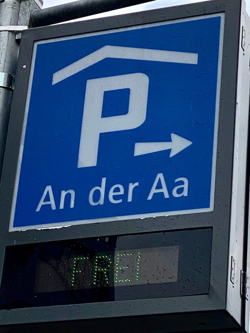 The sign below is a common sign for parking garages and “Frei” indicates there are still free places in this one. “Besetzt” means it is full.