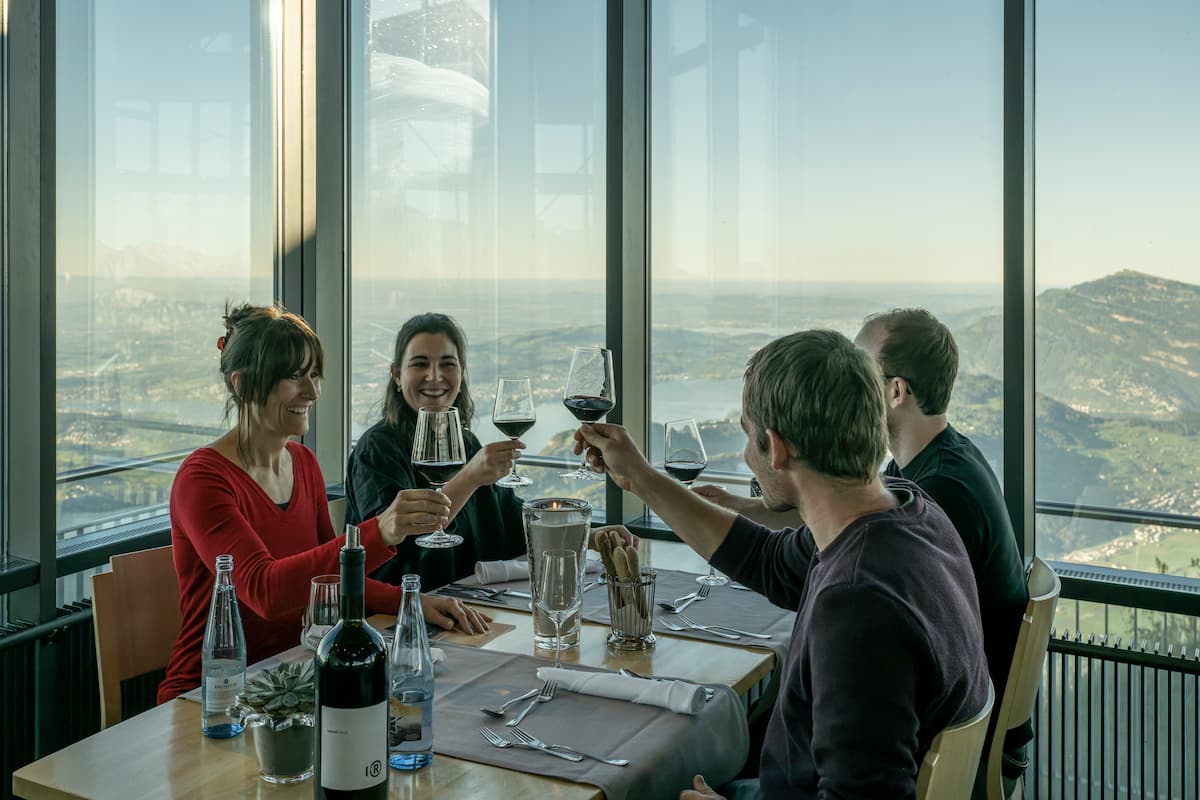 The views from the top take things to the next level compared to those from the restaurant. There are 360-degree views to Lucerne and south along Lake Sarnen to the Brunig Pass, which takes you to Interlaken. So you also b, and the valley leading to Engelberg to the east. On top of that, you have wide views over most of Lake Lucerne to Gersau, which includes Pilatus, Rigi, and Bürgenstock. Wow, there is so much to see!