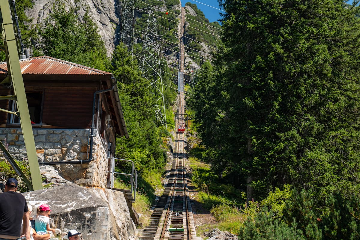 The views during the funicular ride are some of the best you can experience in this part of Switzerland. If you aren’t afraid of heights, you will enjoy the experience, so long as you remember that you’re on exposed terrain for 12 minutes, so appropriate clothing and lots of sunscreen are a must.