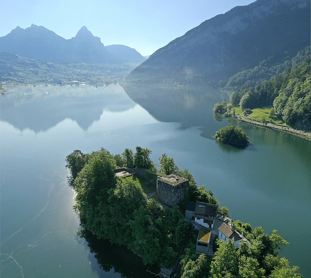 Schwanau is a small island in Lauerz Lake, easily accessible by boat rides from the port in Lauerz. The main landmark on the island is Burgruine Schwanau, a ruined castle turned into a museum. You’ll also find a chapel and a restaurant on Schwanau Island.