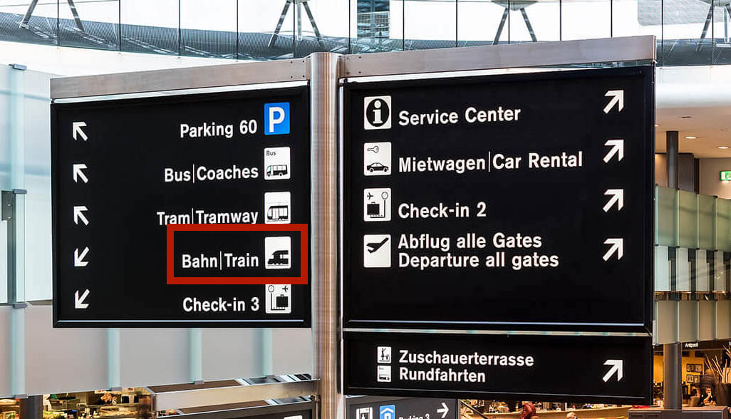 - Once you leave the baggage claim and customs area look for the Bahn/Train signs