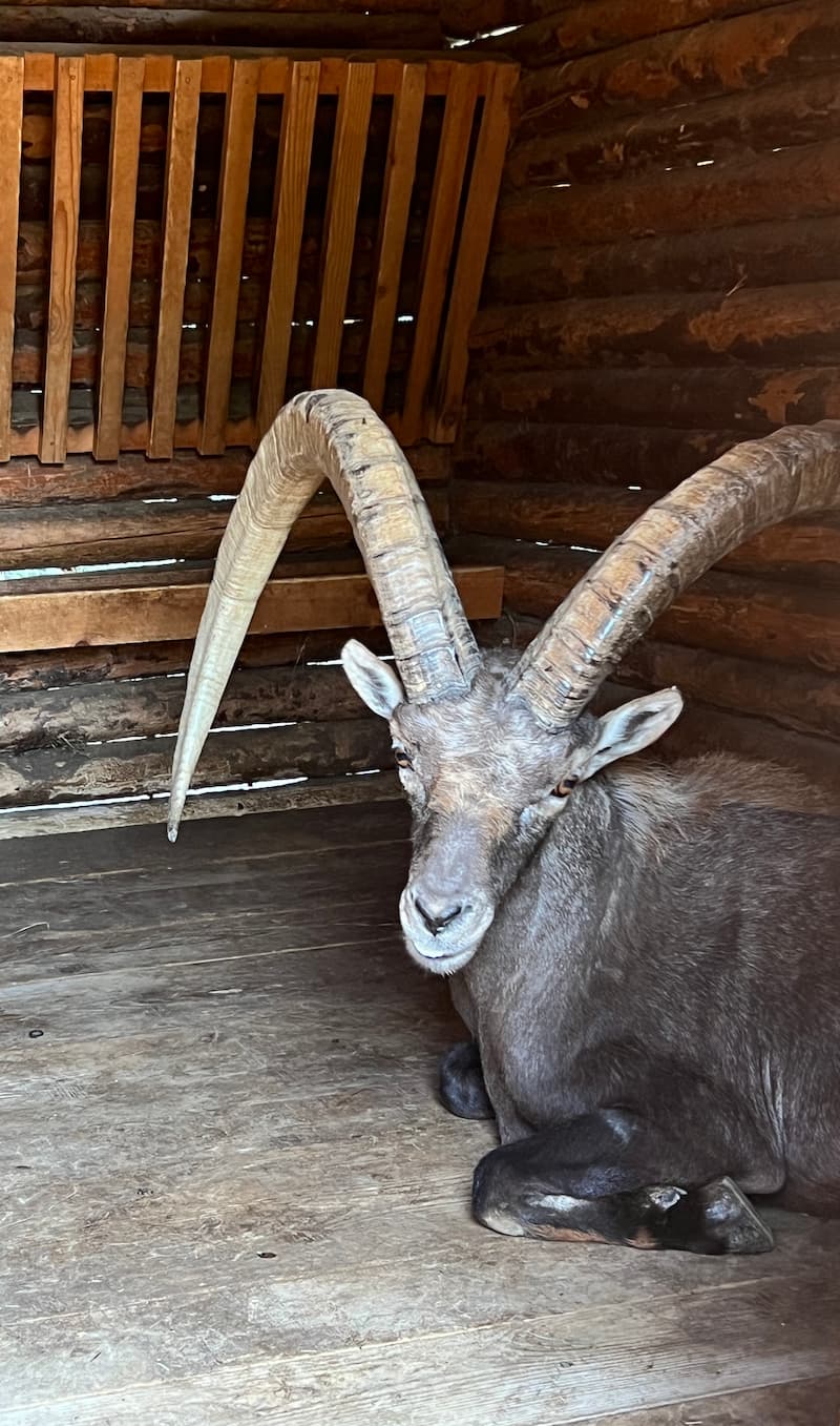 The marmots are on the far right in a separate enclosure and are very easy to see as I found them roaming about during the middle of the day. The Ibex enclosure was closed, but I asked the warden and he let me in and showed me all the Ibexes they have including the one with the largest horns you can see in the image above. Impressive!